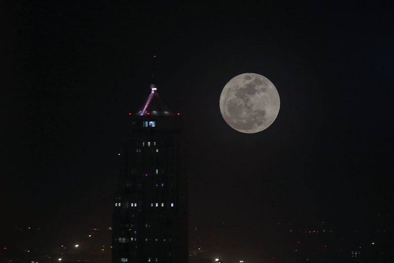 ↑“超級(jí)月亮”現(xiàn)身土耳其首都安卡拉夜空。新華社記者 沙達(dá)提 攝