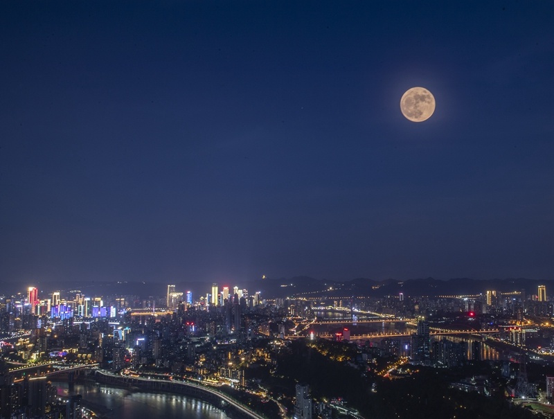 ↑“超級(jí)月亮”現(xiàn)身重慶夜空。新華社記者 黃偉 攝