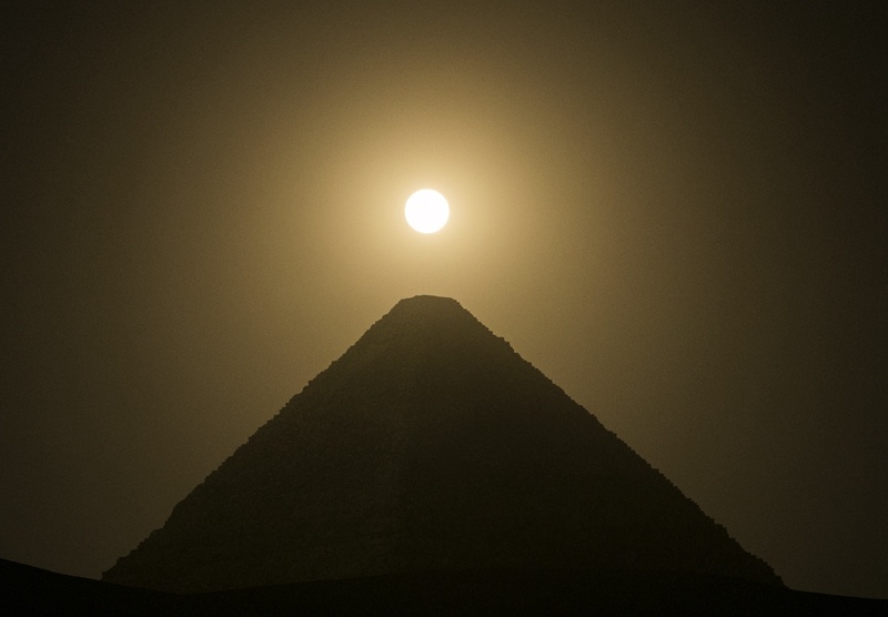 ↑“超級(jí)月亮”現(xiàn)身埃及吉薩胡夫大金字塔上空。新華社記者 隋先凱 攝