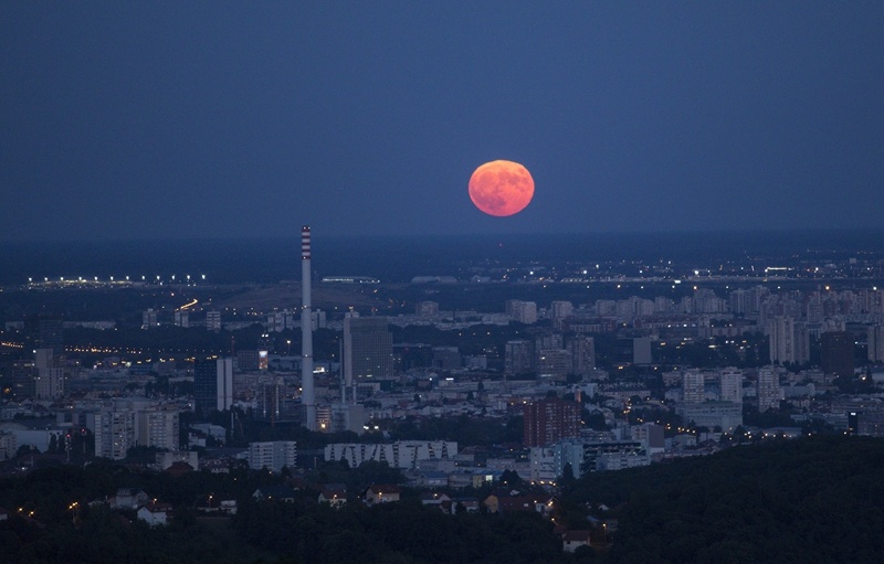 ↑“超級(jí)月亮”現(xiàn)身克羅地亞首都薩格勒布夜空。新華社發(fā)(Pixsell圖片社/巴比奇攝)