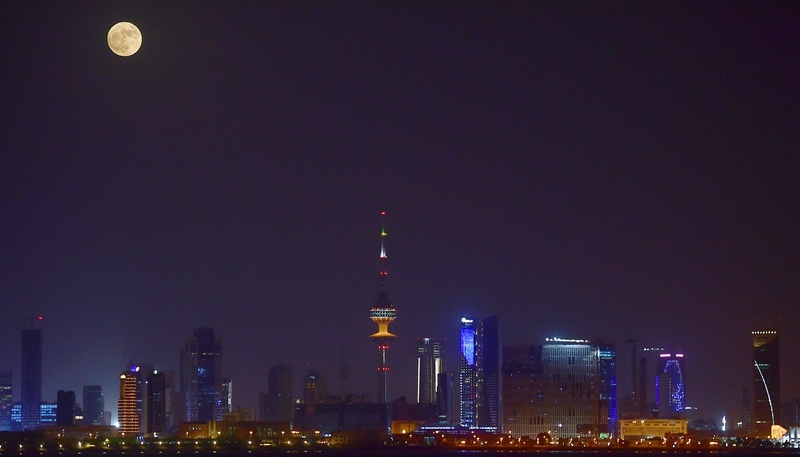 ↑“超級(jí)月亮”現(xiàn)身科威特首都科威特城夜空。新華社記者 尹炣 攝