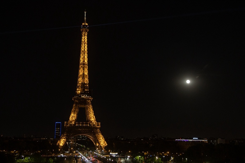 ↑“超級(jí)月亮”現(xiàn)身法國(guó)巴黎埃菲爾鐵塔上空。新華社發(fā)(奧雷利安·莫里薩爾攝)
