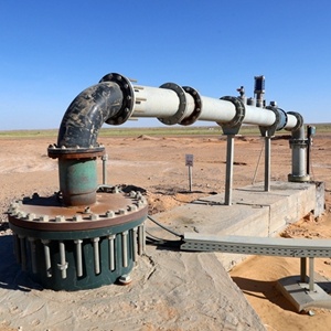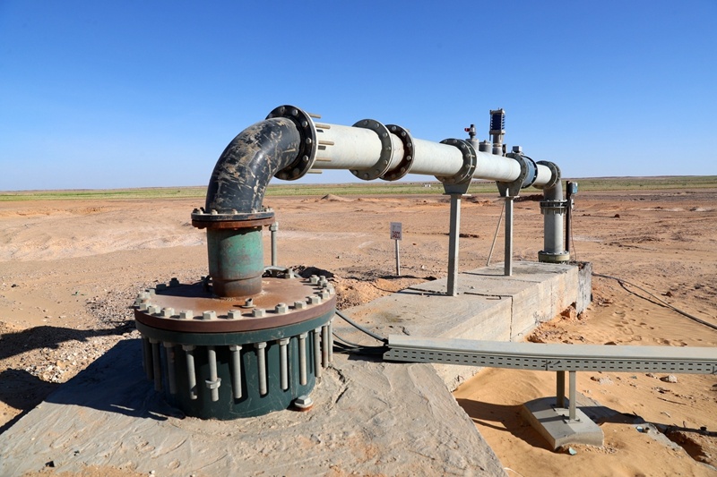 ↑這是7月11日在埃及明亞省沙漠里的甜菜種植農(nóng)場拍攝的一口由中國中曼公司鉆探的水井。新華社記者 隋先凱 攝