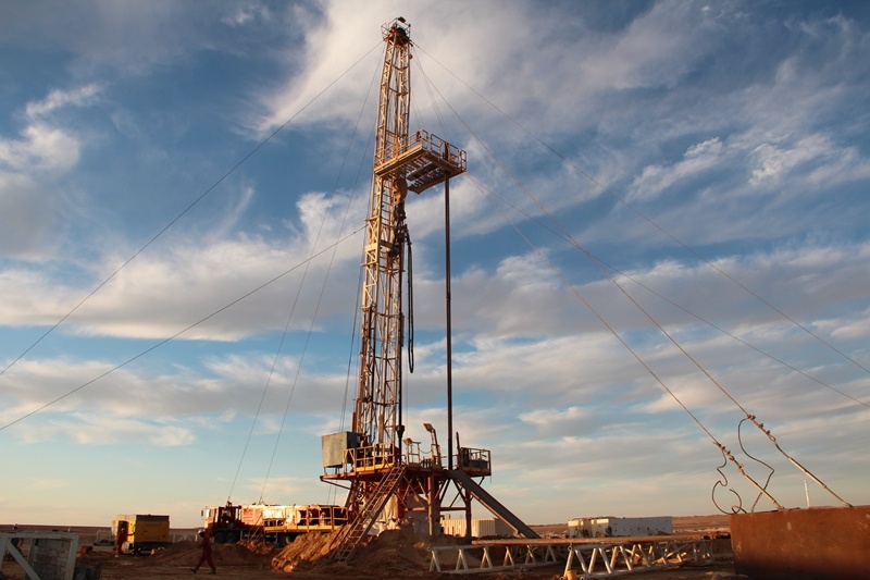 ↑這是2021年2月2日在埃及明亞省沙漠里的種植農(nóng)場拍攝的中國中曼公司打井平臺(無人機照片)。新華社發(fā)(中曼公司供圖)