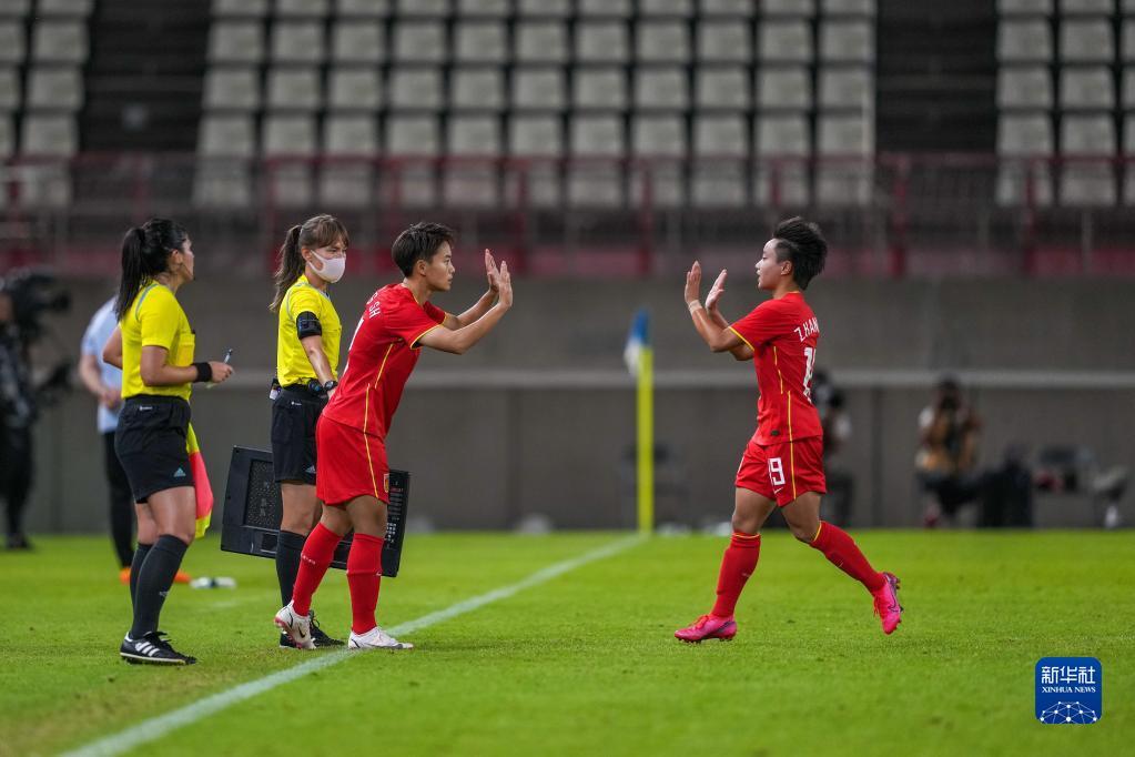 7月23日,中國(guó)隊(duì)球員王霜(右二)在比賽中替換隊(duì)友張琳艷上場(chǎng)。新華社記者 張笑宇 攝