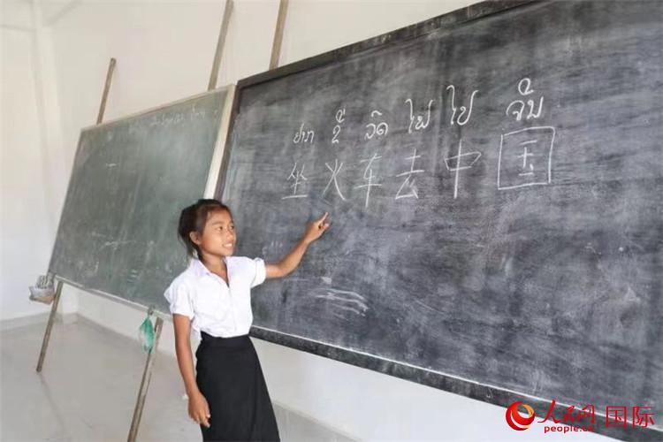 “我想坐火車去中國,”7月的老撾瑯勃拉邦,依然十分炎熱,但湄公河畔的香恩縣博喔村小學(xué)的教室里傳出瑯瑯的讀書聲。記者進(jìn)入教室,看到幾十名老撾小學(xué)生正用稚嫩的童音高聲朗讀黑板上的字,是老撾語和漢語書寫的“我想坐火車去中國”。