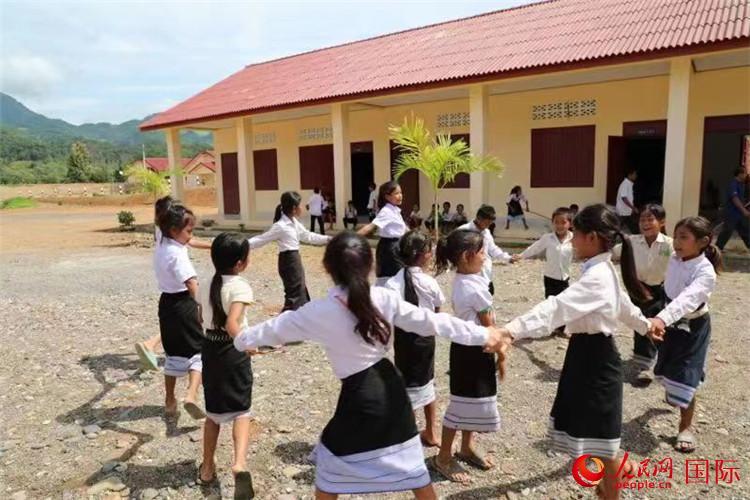 老撾瑯勃拉邦省香恩縣博喔村的小學(xué)生在做游戲。人民網(wǎng)記者 孫廣勇攝 |