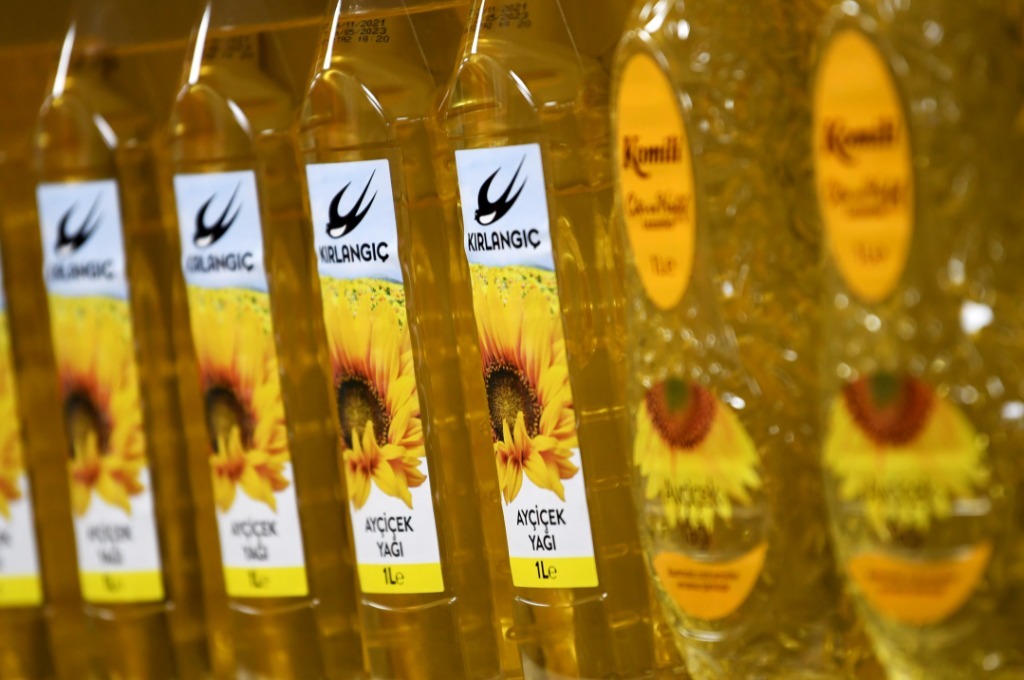 這是3月7日在土耳其伊斯坦布爾拍攝的葵花籽油。新華社記者沙達(dá)提攝