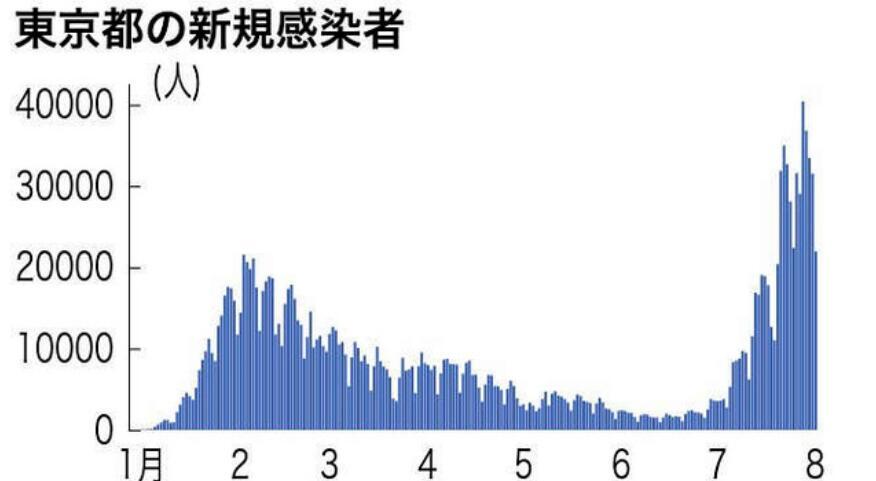 8月1日,東京都新增確診病例2萬1958例,雖然單日新增與上周一相比減少429例,但已連續(xù)13天超過2萬例。截至8月1日,東京都最近一周的日均新增確診病例數為3萬2116.3例,是前一周的123.9%。