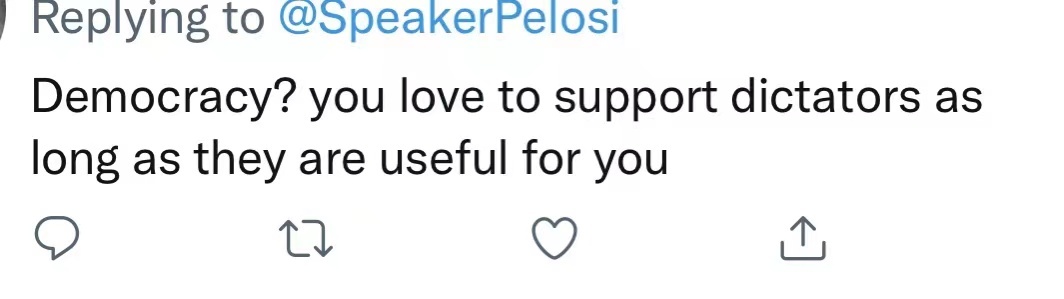 人民網(wǎng)北京8月3日電 8月2日,美國國會眾議長佩洛西不顧中方強(qiáng)烈反對和嚴(yán)正交涉,竄訪中國臺灣地區(qū),上演了一出“徹頭徹尾的鬧劇”。對此,海外網(wǎng)友在自己的社交賬號上發(fā)帖對佩洛西的做法表達(dá)了質(zhì)疑和批評。