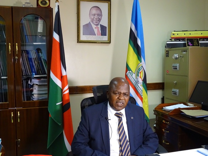 這是7月28日拍攝的肯尼亞鐵路公司總經(jīng)理菲利普·馬伊恩加接受新華社記者專訪的照片。新華社記者白林攝