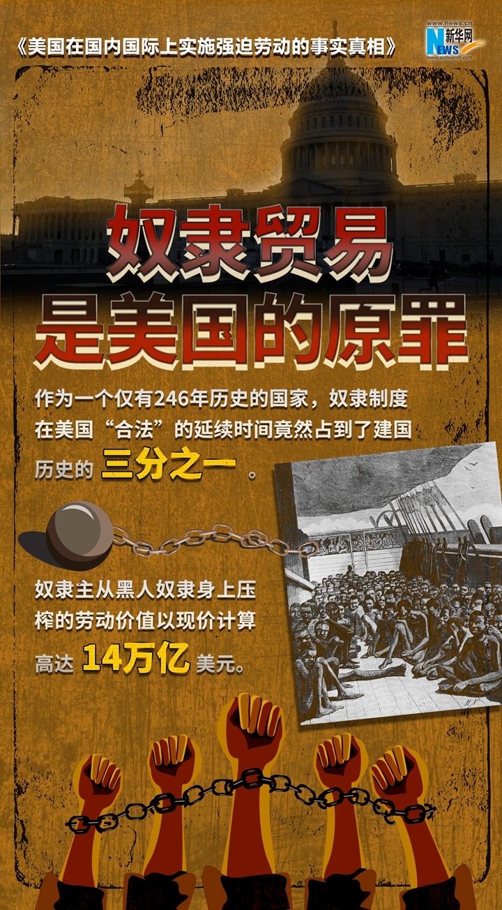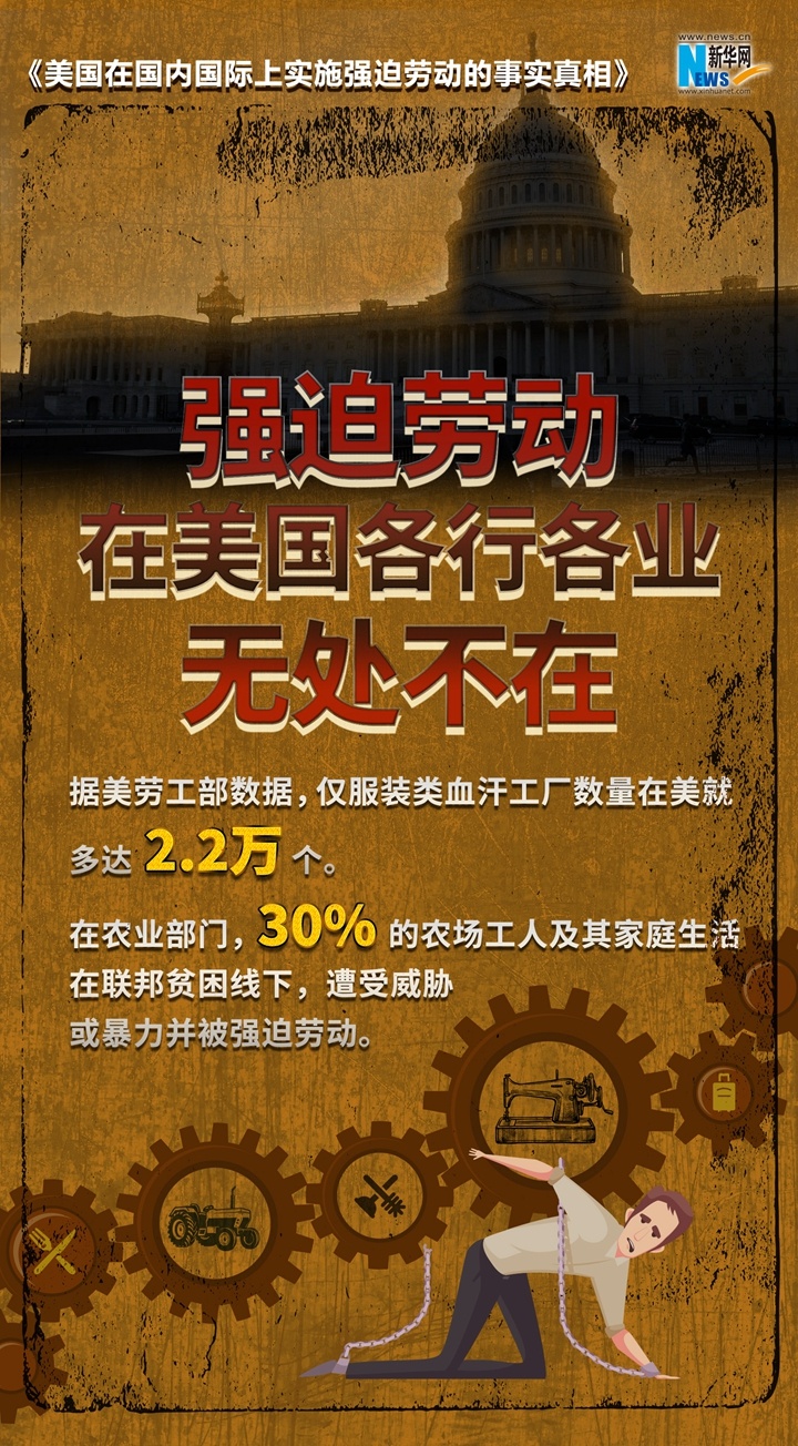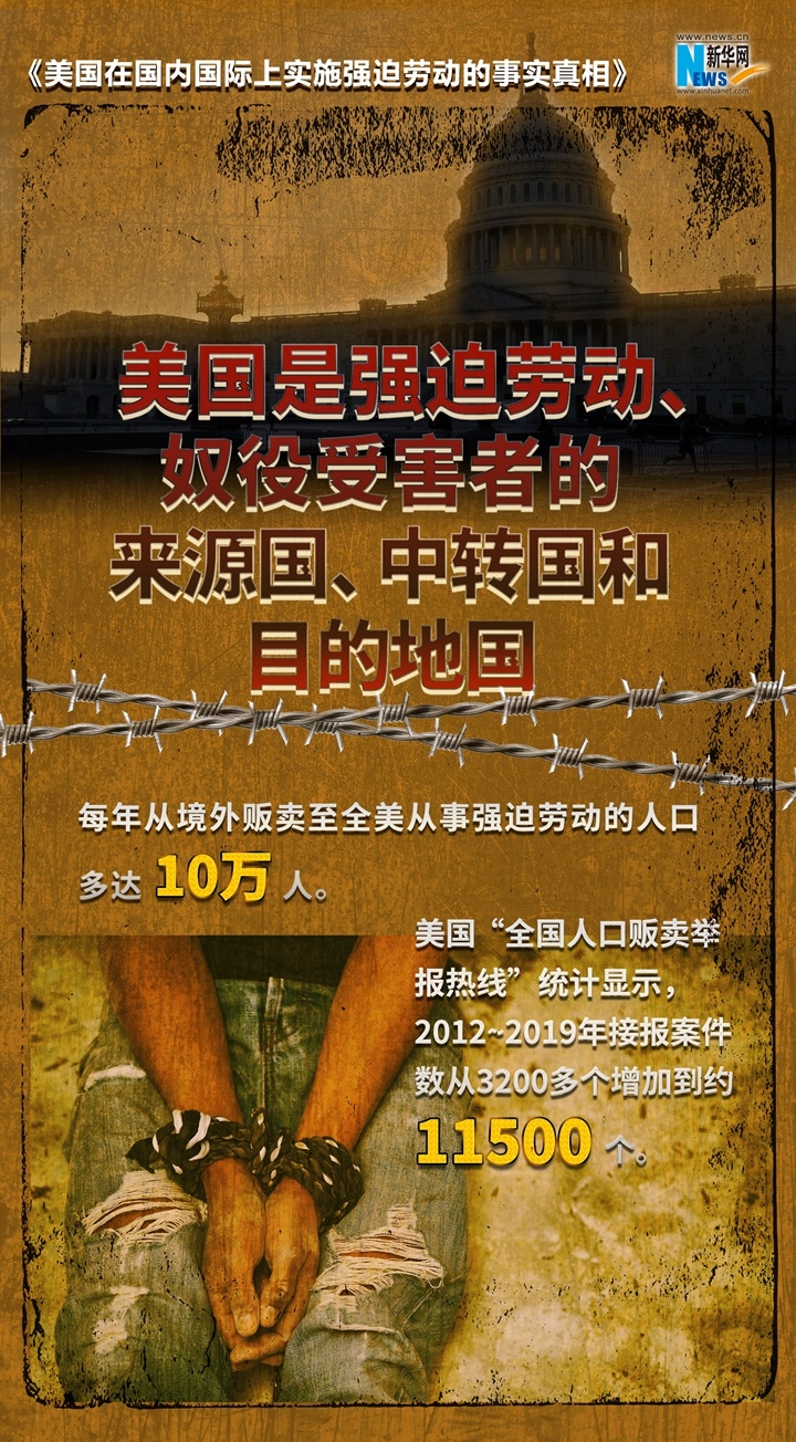 美國(guó)政府打著人權(quán)的幌子,炮制所謂中國(guó)在新疆實(shí)行“強(qiáng)迫勞動(dòng)”等世紀(jì)謊言,詆毀中國(guó)新疆人權(quán)狀況,破壞新疆民生發(fā)展。到底是誰在搞強(qiáng)迫勞動(dòng)?《美國(guó)在國(guó)內(nèi)國(guó)際上實(shí)施強(qiáng)迫勞動(dòng)的事實(shí)真相》報(bào)告以詳實(shí)的數(shù)據(jù)和觸目驚心的事實(shí),起底美國(guó)強(qiáng)迫勞動(dòng)真相,戳穿美方“以疆制華”圖謀。