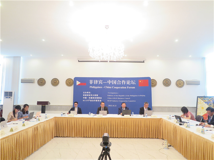 人民網(wǎng)北京8月22日電 (記者李欣怡)22日,中國—菲律賓合作論壇在京召開。論壇由中國—東盟商務(wù)理事會、RCEP產(chǎn)業(yè)合作委員會與菲律賓駐華大使館聯(lián)合主辦,在菲律賓駐華大使館設(shè)主會場,兩國多地設(shè)了分會場。