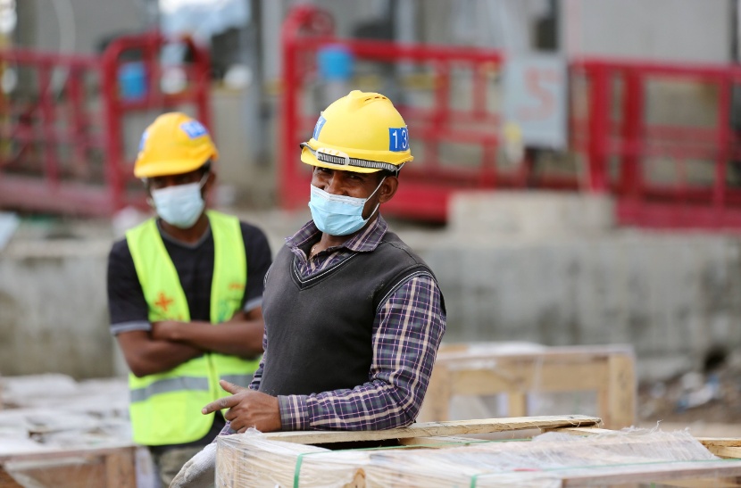 8月16日,非洲疾控中心總部大樓項(xiàng)目組工人在工地工作。新華社記者汪平攝