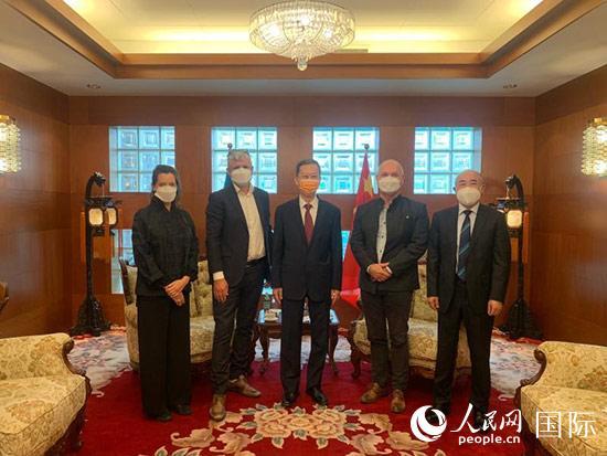 崔愛民大使會見瑞典孵化器科技園協(xié)會(SISP)總裁厄德馬克。 人民網(wǎng) 王文攝