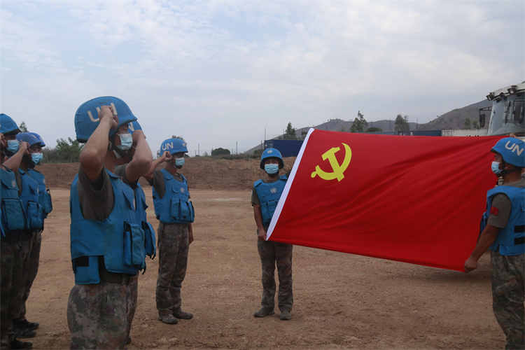 任務(wù)一線重溫入黨誓詞。中國第25批赴剛果(金)維和工兵分隊(duì)供圖 |