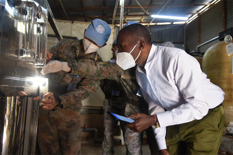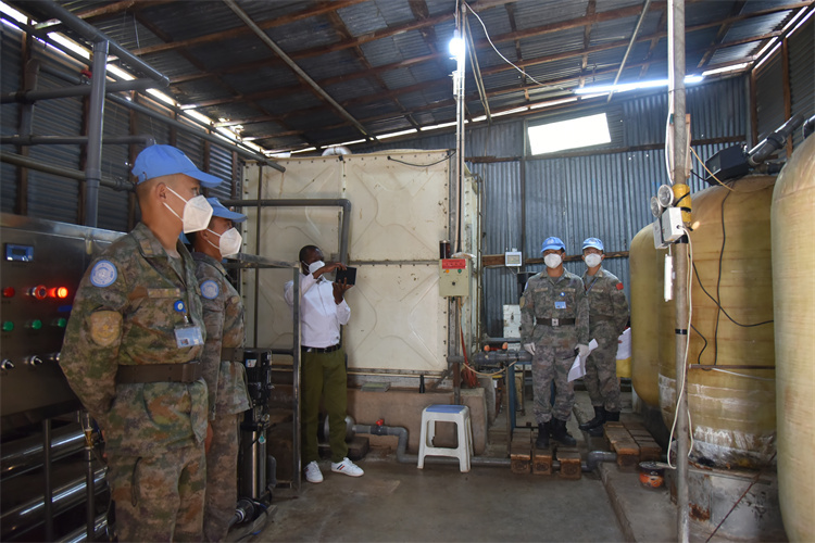 聯(lián)合國(guó)檢查人員對(duì)凈水設(shè)備進(jìn)行拍照保存。中國(guó)第25批赴剛果(金)維和工兵分隊(duì)供圖 |