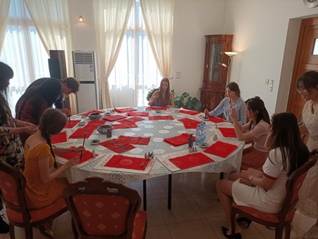 大使館的工作人員為這些學(xué)生們準(zhǔn)備了中國(guó)美食、趣味中文游戲、打乒乓球以及剪紙、書法體驗(yàn)等活動(dòng)。