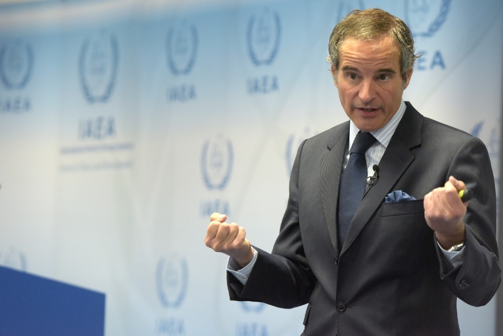 4月28日,國(guó)際原子能機(jī)構(gòu)總干事格羅西在奧地利維也納舉行的新聞發(fā)布會(huì)上講話(huà)。新華社記者郭晨攝