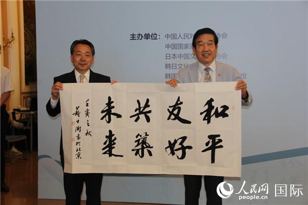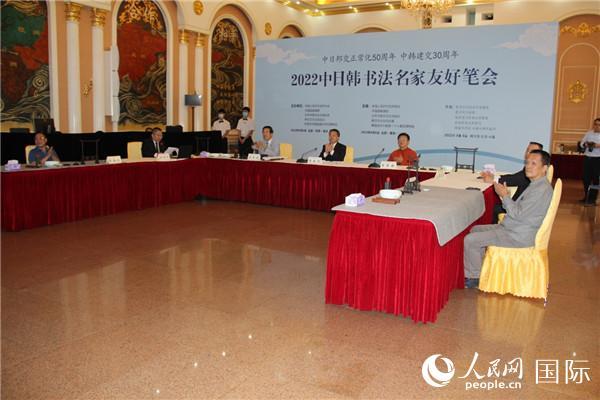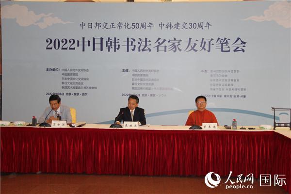 人民網(wǎng)北京9月7日電 (記者趙雯博)今年是中日邦交正?;?0周年和中韓建交30周年。9月6日,由中國人民對外友好協(xié)會、中國國家畫院、日中文化交流協(xié)會、韓日文化交流會議、韓國藝術(shù)殿堂首爾書藝博物館共同主辦的2022中日韓書法名家友好筆會,通過線上線下相結(jié)合的方式,在北京、東京、首爾三地舉辦。在北京會場,還特別策劃了中日韓名家書法作品回顧展。