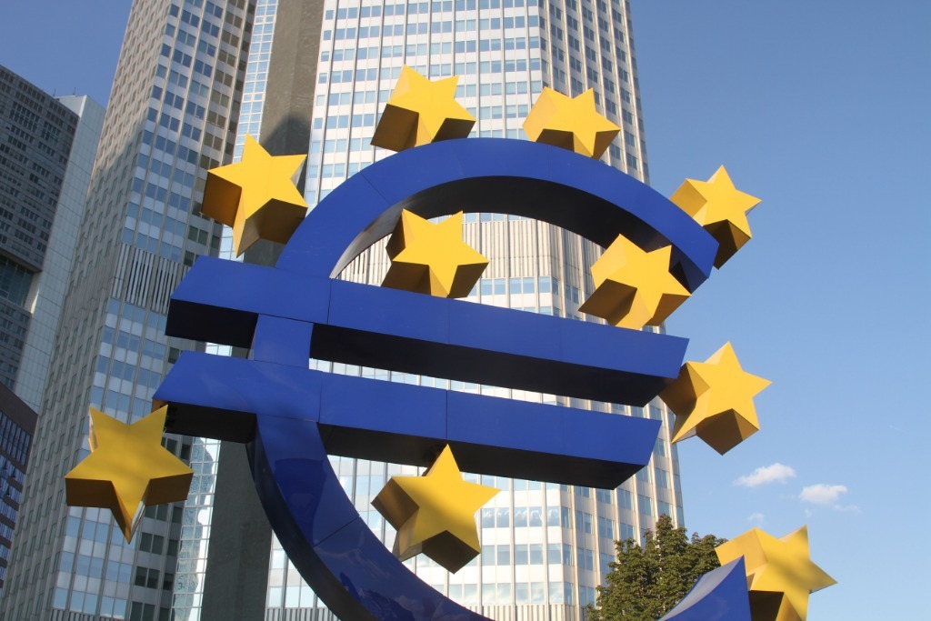 這是8月22日在德國法蘭克福拍攝的歐元雕塑。新華社記者單瑋怡攝