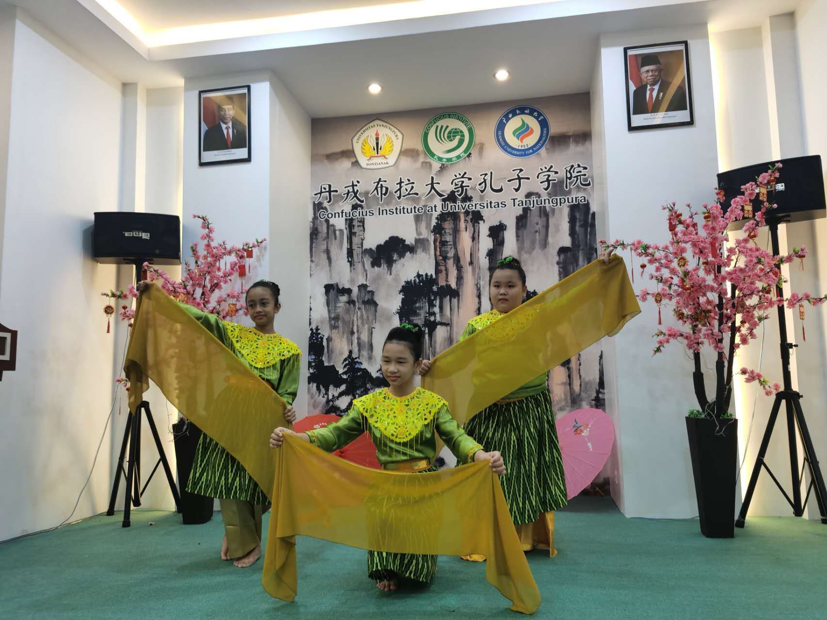 印尼兒童表演馬來舞蹈。印尼丹絨布拉大學(xué)孔子學(xué)院供圖