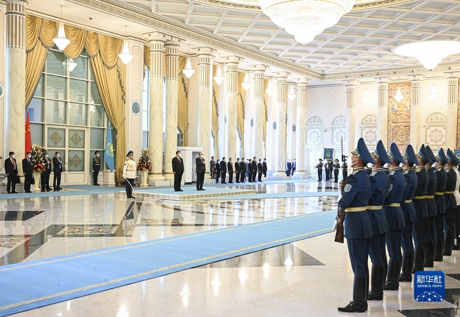 當(dāng)?shù)貢r間9月14日,國家主席習(xí)近平出席哈薩克斯坦總統(tǒng)托卡耶夫在總統(tǒng)府舉行的隆重歡迎儀式。