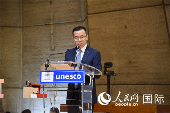 中國(guó)駐法國(guó)大使盧沙野在論壇致辭。人民網(wǎng)記者 劉玲玲攝 |