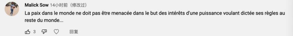 法語網(wǎng)友Malick Sow:“不能為了一個想要將其規(guī)則強加給世界其他地區(qū)的大國的利益而威脅到整個世界的和平?!薄斑@起核轉(zhuǎn)讓事件就是一個完美的例子,美國隨時準(zhǔn)備一切行動,甚至能為了經(jīng)濟(jì)利益打擊自己的盟友?!?/p>