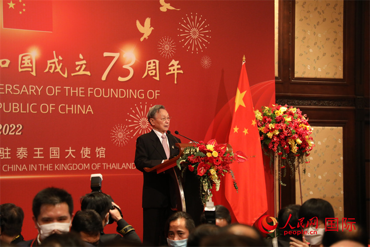 泰國國會(huì)主席兼下議院議長川·立派在致辭中表示,去年慶祝了中國共產(chǎn)黨成立100周年,今天祝福新中國成立73周年。在中國共產(chǎn)黨的帶領(lǐng)下,中國取得了巨大的發(fā)展成就,泰中關(guān)系也實(shí)現(xiàn)了持續(xù)穩(wěn)定。新冠疫情延宕3年,但中國對泰國的抗疫援助和支持,也再次證明了泰中政府和人民之間的友好情誼。泰方期待同中國駐泰使館繼續(xù)密切合作,共同推動(dòng)兩國關(guān)系穩(wěn)定、可持續(xù)發(fā)展。