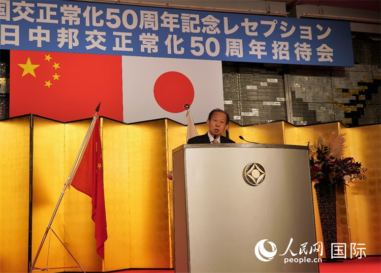 9月29日,日本自民黨前干事長(zhǎng)二階俊博在紀(jì)念活動(dòng)上致辭。人民網(wǎng)記者 吳穎攝