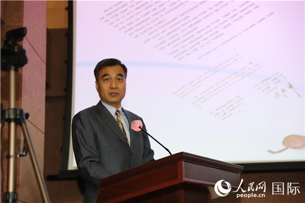 2022年10月7日,蒙古國科學院副院長楚龍巴特爾致辭。人民網(wǎng)記者 霍文攝