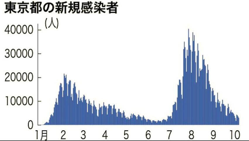 10月8日,東京都新增確診病例2605例,單日新增與上周六相比減少了1229例,已經(jīng)連續(xù)11天低于上周同期。截至10月8日,東京都最近一周的日均新增確診病例數(shù)為3167.6例,是前一周的61.6%。