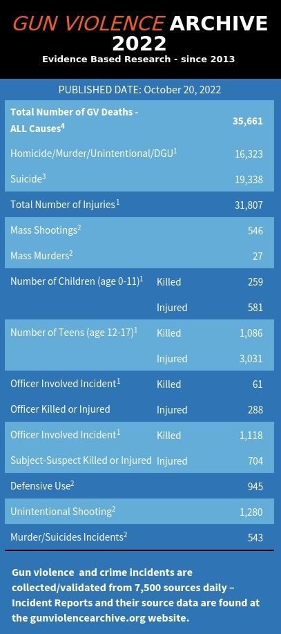 美國(guó)“槍支暴力檔案”網(wǎng)站數(shù)據(jù)顯示,截至10月20日,2022年美國(guó)已發(fā)生546起大規(guī)模槍擊事件,已有超過(guò)1300名未成年人死于槍支暴力。圖片來(lái)源:美國(guó)“槍支暴力檔案”網(wǎng)站官網(wǎng)截圖