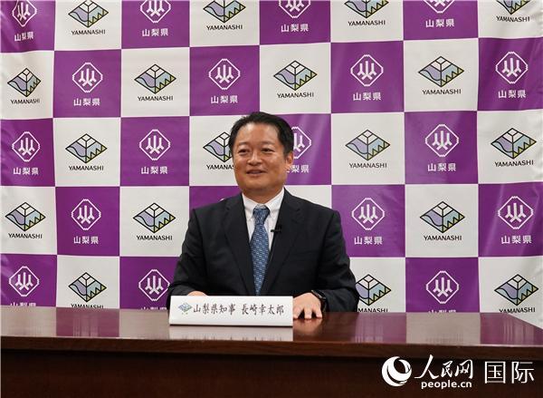 日本山梨縣知事長崎幸太郎接受人民網(wǎng)專訪。人民網(wǎng) 吳穎攝