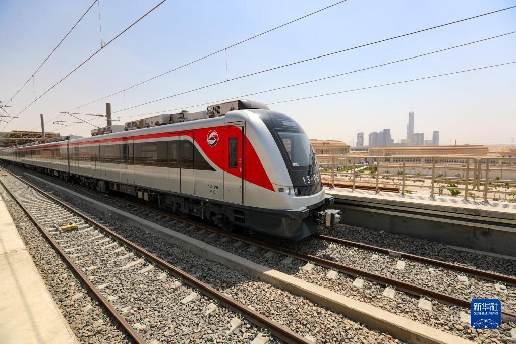 2022年7月3日,由中國企業(yè)承建的埃及齋月十日城輕軌鐵路通車試運行。埃及齋月十日城輕軌鐵路位于埃及首都開羅東部,是連接開羅市區(qū)與新行政首都、齋月十日城和東部沿線衛(wèi)星城的重要紐帶,也是中?!耙粠б宦贰焙献髌炫烅椖恐弧P氯A社記者 隋先凱攝