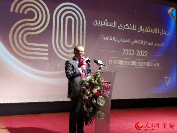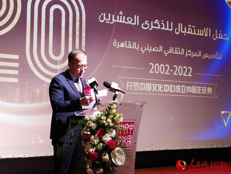 中國(guó)駐埃及使館文化參贊兼文化中心主任楊榮浩致辭。人民網(wǎng)記者 黃培昭攝 |