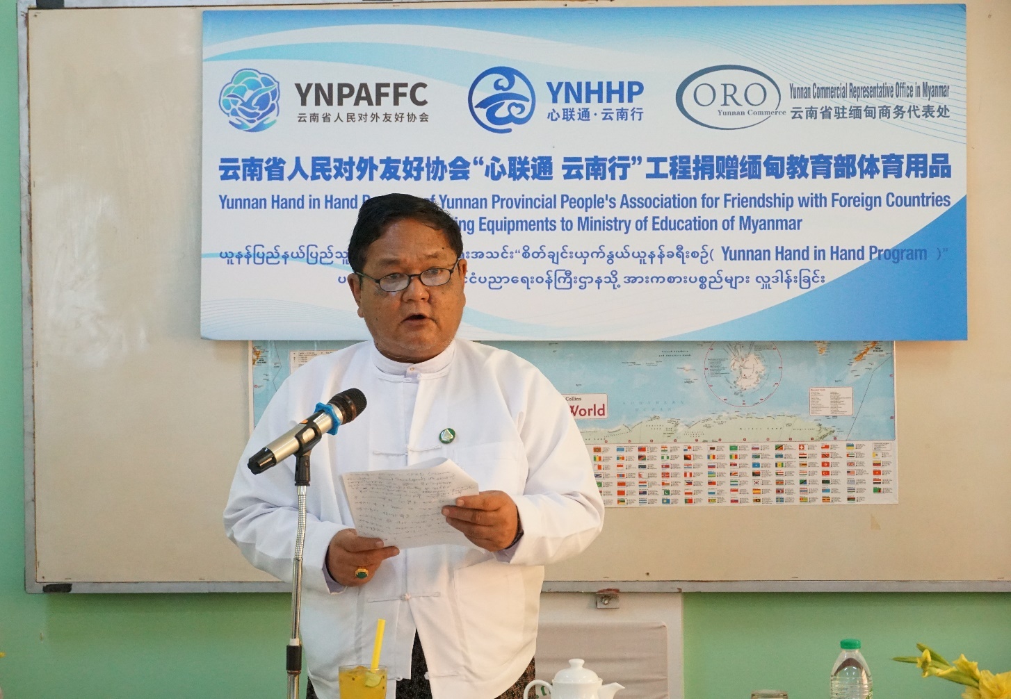仰光省基礎(chǔ)教育司副司長吳覺莫吞對此次捐贈表示感謝。人民網(wǎng)記者 李秉新攝