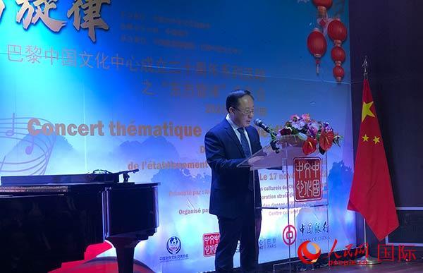 巴黎中國文化中心主任佘明遠(yuǎn)致辭。人民網(wǎng)記者 劉玲玲攝