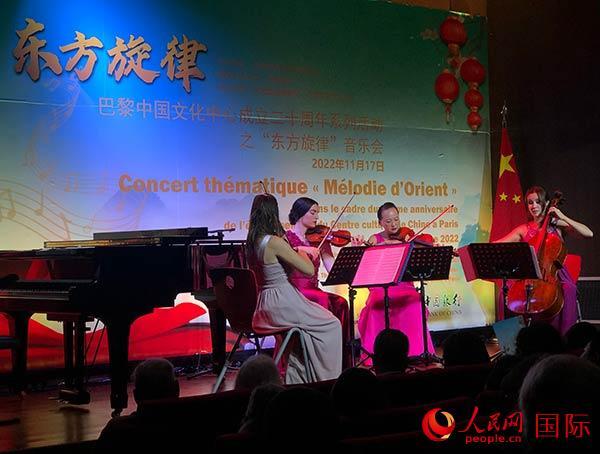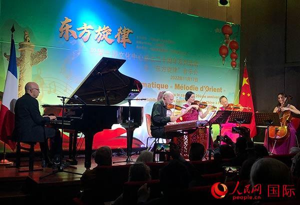 人民網(wǎng)巴黎11月17日電 (記者劉玲玲)17日晚,由中國對外文化交流協(xié)會(huì)主辦,巴黎中國文化中心、中國歌劇舞劇院承辦的“東方旋律”音樂會(huì)在法國巴黎舉行。中國駐法國大使盧沙野、法國新里昂中法大學(xué)副主席阿蘭·拉巴特等出席活動(dòng)并致辭。來自中法各界200余人現(xiàn)場觀看了音樂會(huì)。音樂家尚·馬龍、左漢與藝韻女子弦樂四重奏樂團(tuán)為觀眾現(xiàn)場演繹了《東方旋律》《莫扎特:G大調(diào)弦樂小夜曲》《茉莉花》等中外名曲,為觀眾奉獻(xiàn)了一場東西方音樂交融、經(jīng)典與時(shí)代輝映的藝術(shù)盛宴。