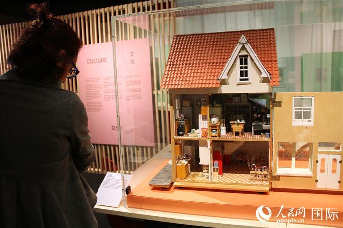 在英華人葉寶蓮以自己經(jīng)營(yíng)的中餐外賣店為基礎(chǔ)制作的娃娃屋模型。人民網(wǎng)記者 邢雪攝 |