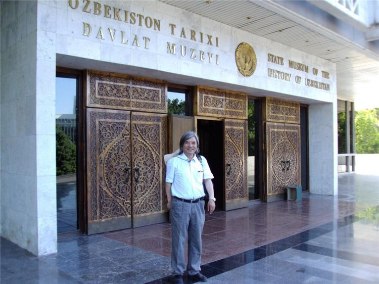 2009年,王建新第一次到達(dá)烏茲別克斯坦,在烏國家歷史博物館門前拍照留念。王新建團(tuán)隊(duì)供圖