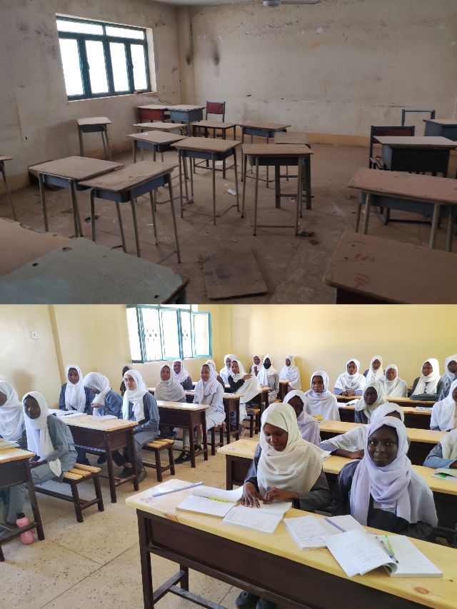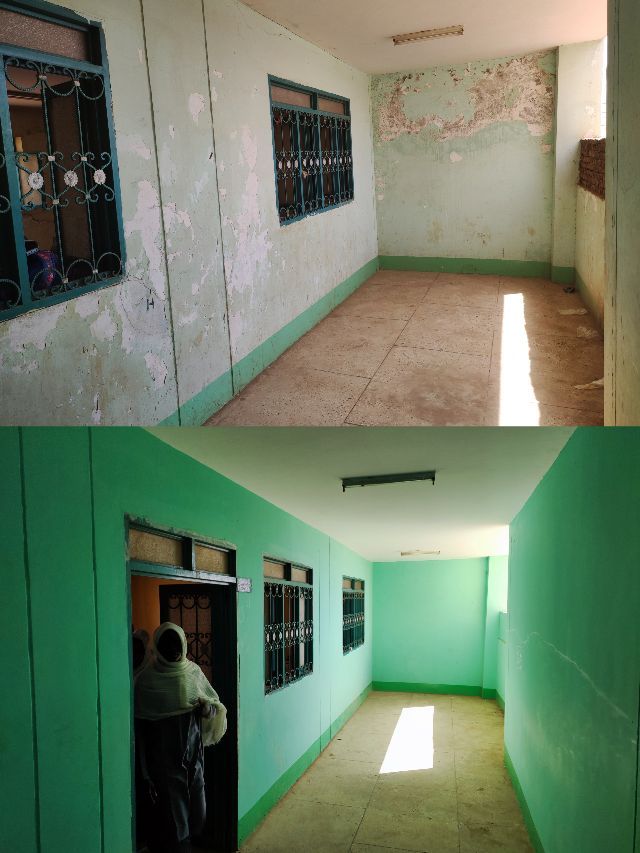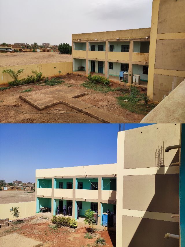 2022年8月至今,中國石油尼羅河公司響應(yīng)使館號召,積極履行中國企業(yè)社會責(zé)任,捐資再次對學(xué)校進(jìn)行了升級修繕,與蘇丹電力局聯(lián)系為學(xué)校電力系統(tǒng)擴(kuò)容,滿足學(xué)校新增加投入使用的電教室和多功能廳的電力負(fù)載需求。對學(xué)校教室、走廊、教學(xué)樓外立面等3500平方米的面積進(jìn)行全面粉刷,使得學(xué)校面貌煥然一新。為改善學(xué)生上課環(huán)境,訂制并捐贈滿足200名學(xué)生使用的嶄新課桌椅。為解決雨季二樓教室屋頂滲水問題,對主教學(xué)樓頂樓全面翻修,重新鋪設(shè)防水層和地磚,同時將435平方米的屋頂閑置面積整修、擴(kuò)建為學(xué)生課余活動場所。