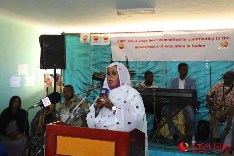 恩圖曼教育局局長阿卜杜拉致辭。人民網(wǎng)記者 蘇航攝 |