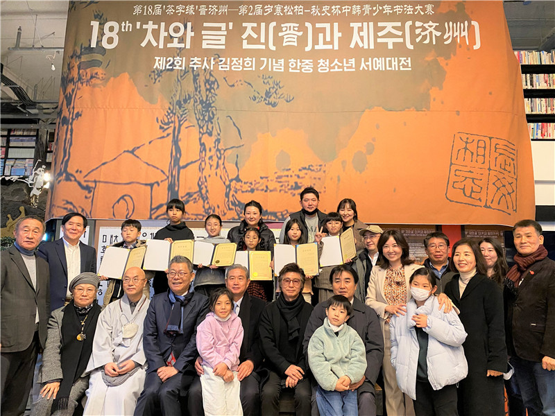 人民網(wǎng)首爾12月5日電 (記者馬菲)第18屆“茶字緣”晉濟(jì)州暨第二屆歲寒松柏“秋史杯”中韓青少年書(shū)法大賽作品展暨頒獎(jiǎng)典禮2日在韓國(guó)濟(jì)州舉行。