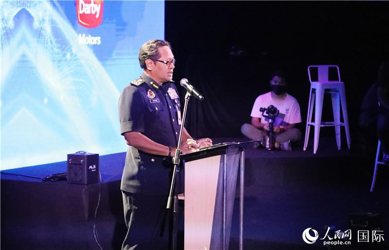 馬來(lái)西亞陸路交通局局長(zhǎng)扎拉尼·哈吉·哈什在發(fā)布會(huì)上講話。人民網(wǎng)記者 趙益普攝 |
