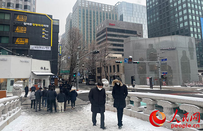 首爾市廳寫字樓附近的行人。人民網(wǎng) 曹翔宇攝