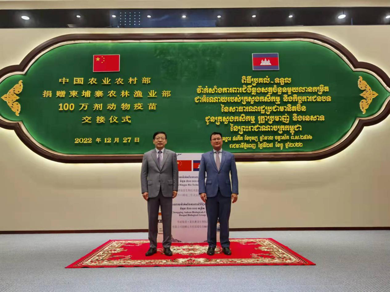 人民網(wǎng)曼谷12月28日電 (記者趙益普)12月27日上午,中國(guó)農(nóng)業(yè)農(nóng)村部向柬埔寨政府捐贈(zèng)了100萬(wàn)劑動(dòng)物疫苗,包括50萬(wàn)劑??谔阋咭呙绾?0萬(wàn)劑用于治療牛結(jié)節(jié)性皮膚病的山羊痘疫苗。這是繼2019年底中國(guó)政府首次捐贈(zèng)柬埔寨20萬(wàn)劑動(dòng)物疫苗以來(lái)的第二次捐贈(zèng)。