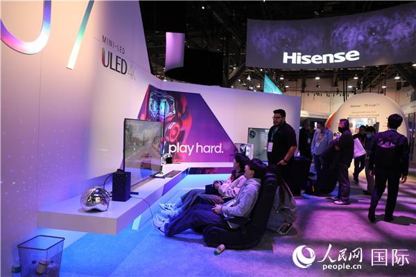 在2023年美國消費(fèi)電子展上,人們在中國企業(yè)展廳體驗(yàn)新產(chǎn)品。 人民網(wǎng)記者 李志偉攝