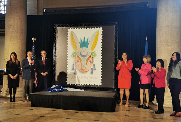 美國郵政總局在舊金山亞洲藝術博物館舉行中國農(nóng)歷兔年紀念郵票發(fā)行儀式。主辦方供圖